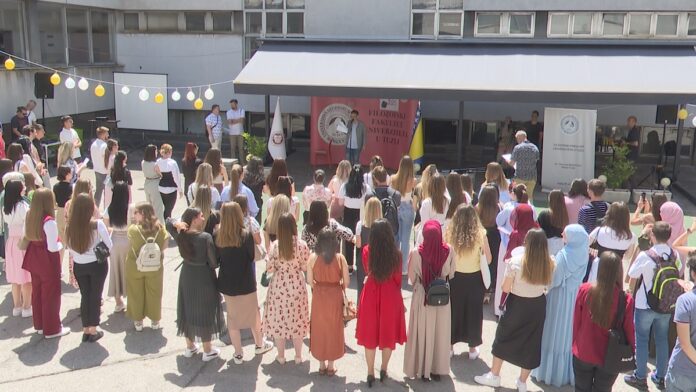 Filozofski fakultet Univerziteta u Tuzli u Atriju organizovao je danas ispraćaj studenata i studentica završnih godina sa svih odsjeka pod nazivom ExitFF – 2025. Uz prigodna obraćanja i zabavni program, ovo je prva ovakva manifestacija na Univerzitetu u Tuzli. Prilika je ovo da se na simbiolički način nastavnici i saradnici oproste sa svojim uspješnim studentima.