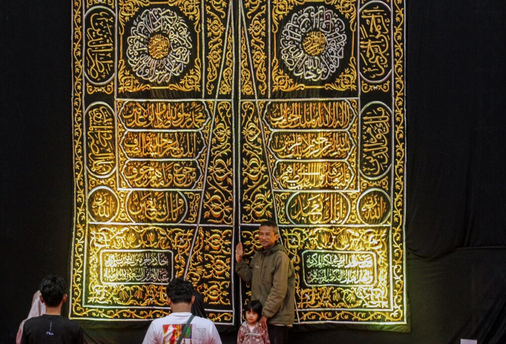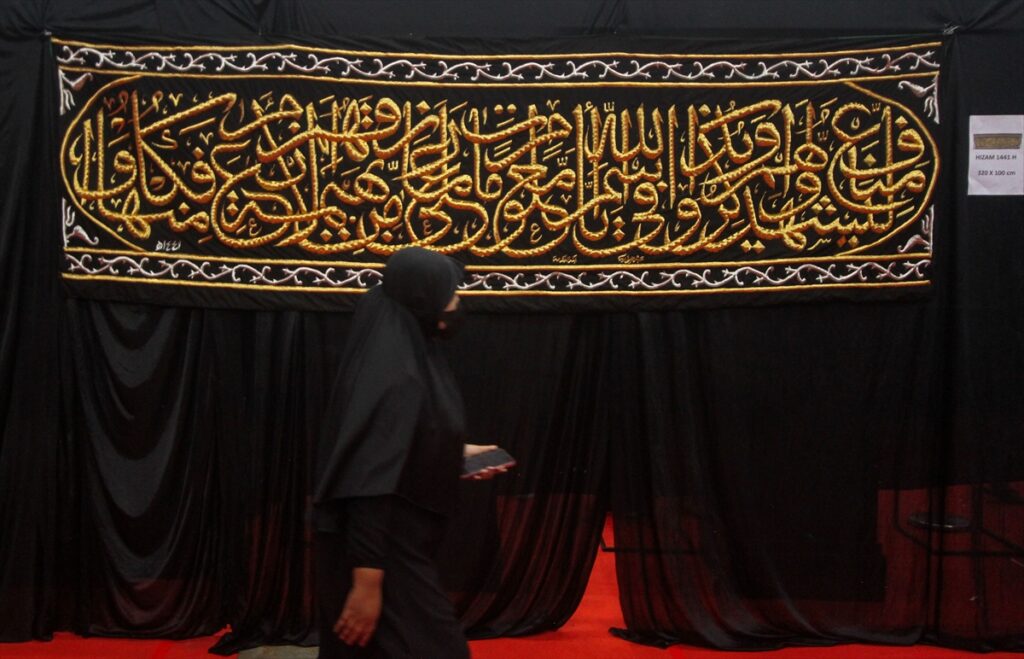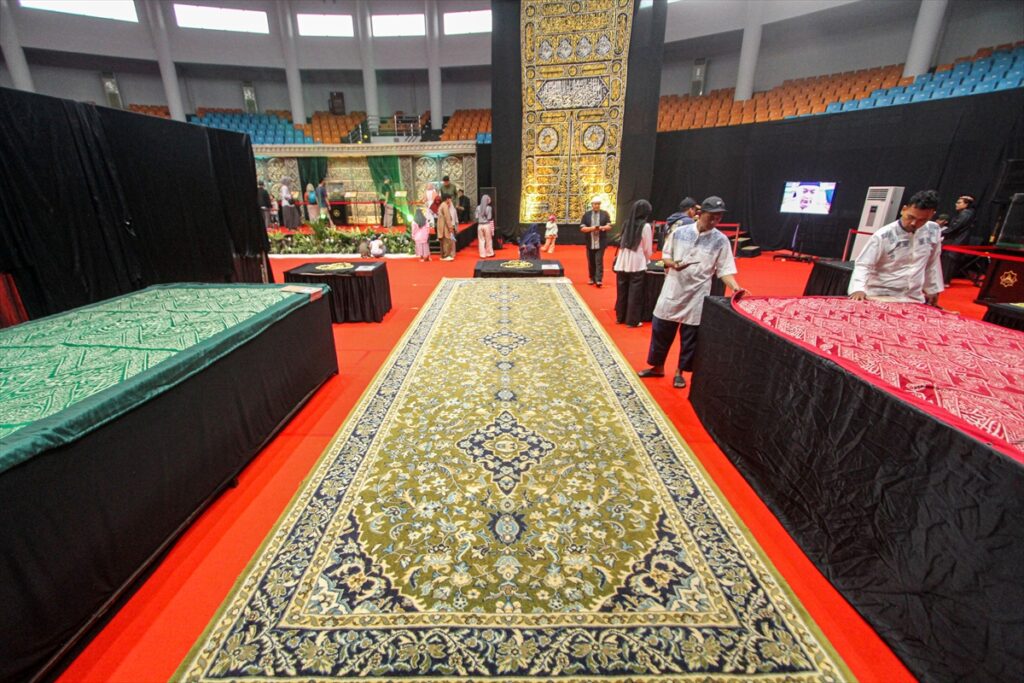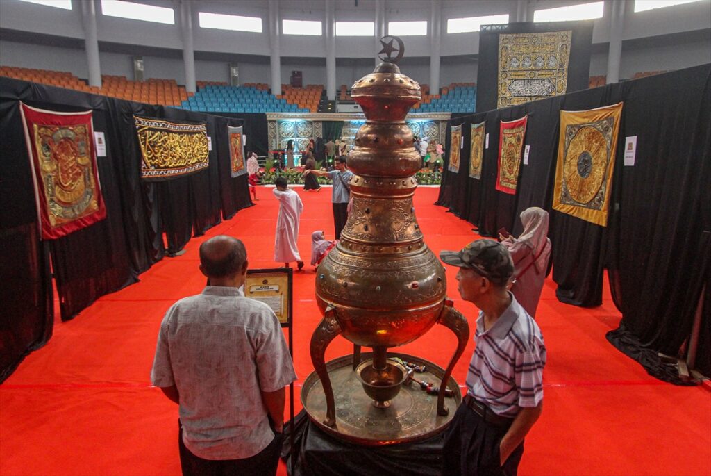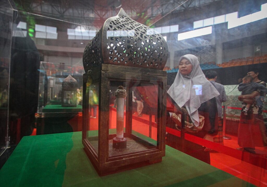 Posjetioci posmatraju artefakte iz vremena poslanika Muhammeda a.s. izložene na izložbi artefakata Poslanika s.a.v.s. i njegovih ashaba u zgradi Laga Satria u Pakansariju, Bogor Regency, Zapadna Java, Indonezija, 21. februara 2026. Izložba prikazuje 45 relikvija poslanika Muhameda a.s. i njegovih ashaba, od ratne opreme, štapova do Poslanikove s.a.v.s. brade i kose, a cilj joj je da posluži kao historijsko-edukativna tura tokom ramazana.