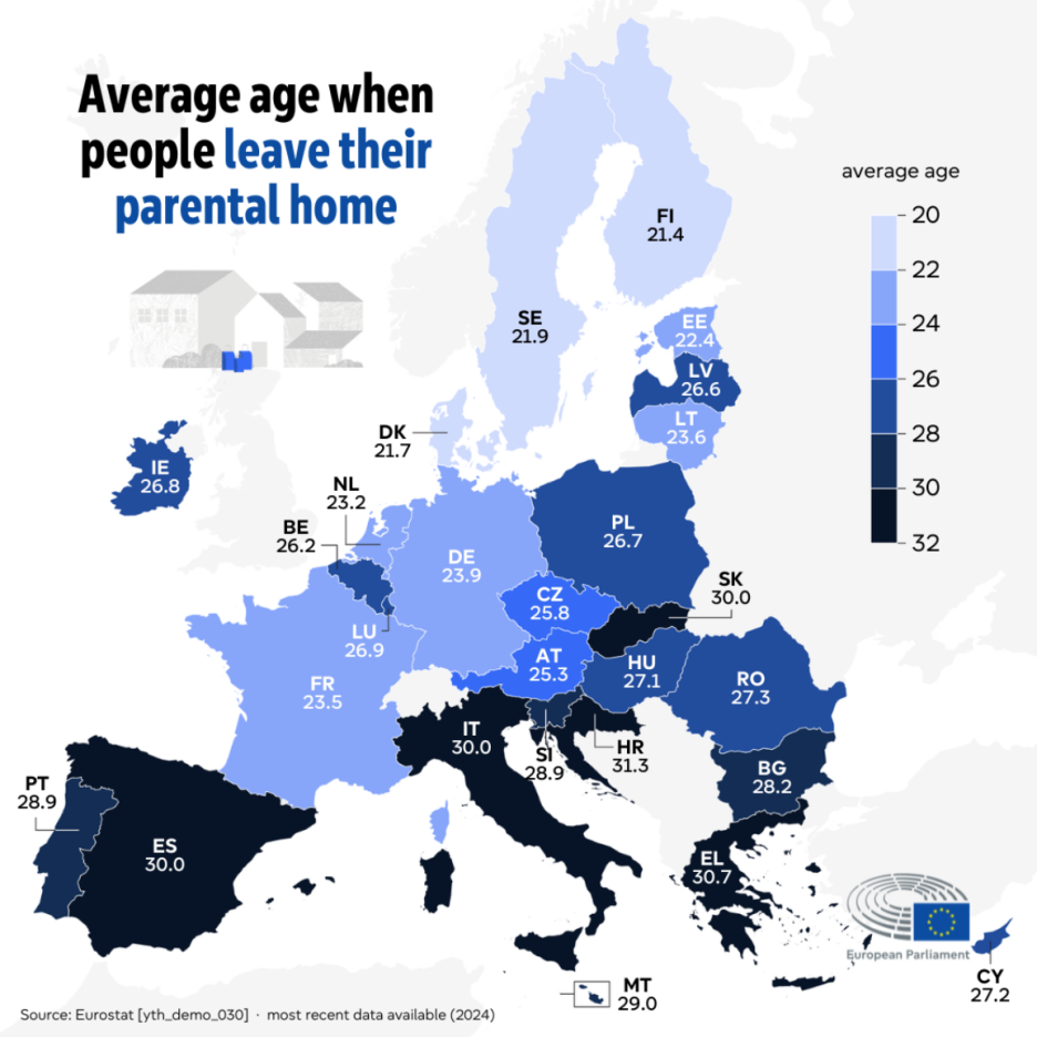 U posljednjoj deceniji cijene nekretnina su značajno porasle, što ljudima otežava pronalazak pristupačnih mjesta za život. Posebno su pogođeni mladi Evropljani, koji kasnije napuštaju roditeljski dom.