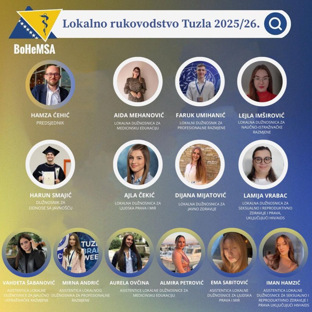 Nedavno je izabrano novo lokalno rukovodstvo Udruženja studenata medicine u BiH – “BoHeMSA” Tuzla za mandatni period 2025/26. godine a prethodno su sumirani rezultati u proteklom periodu te su članovi razmijenili utiske i ideje koje će poslužiti kao inspiracija za naredni period.