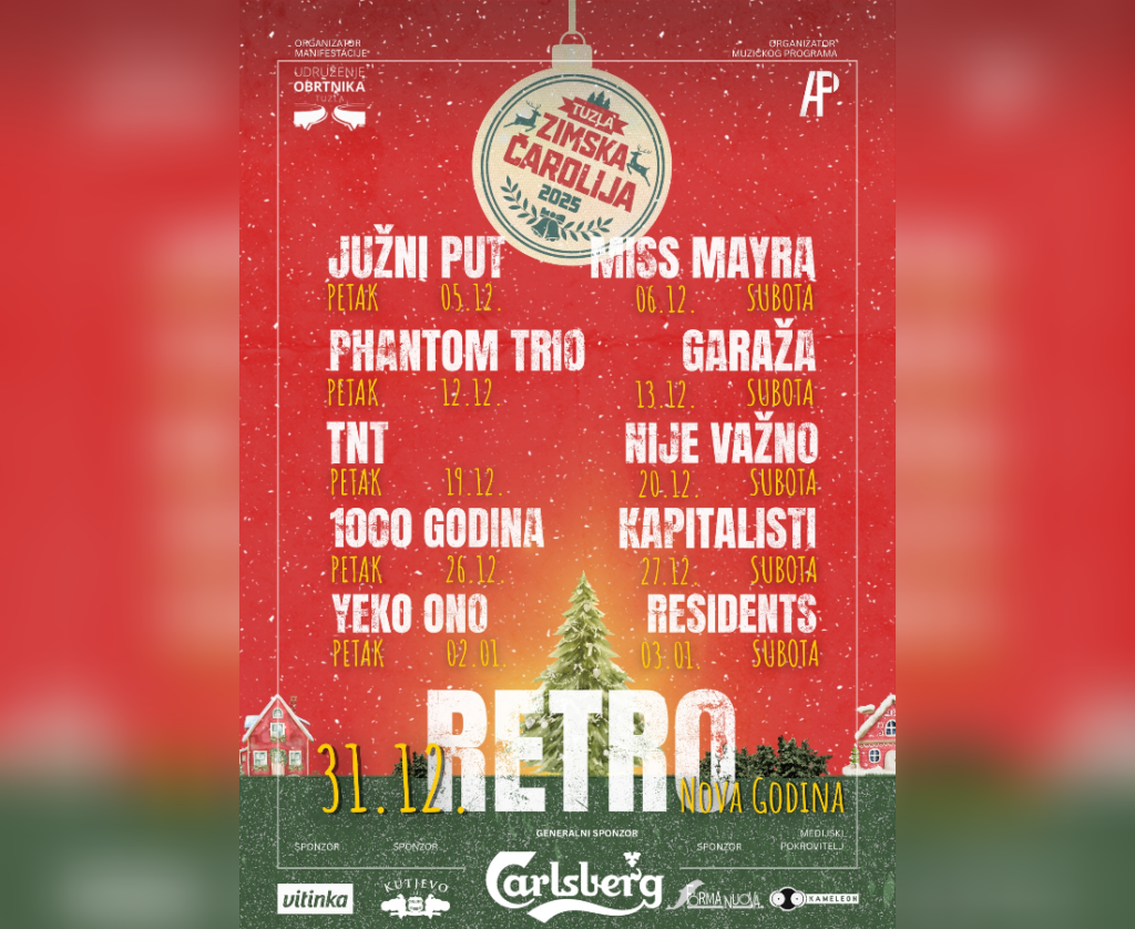 Tokom cijelog decembra i početkom januara, na pozornici u gradskom parku nastupit će brojni tuzlanski bendovi i muzičari. Program predviđa koncerte svakog petka i subote, a centralni događaj biće i doček Nove godine uz koncert popularnog benda “Retro”.